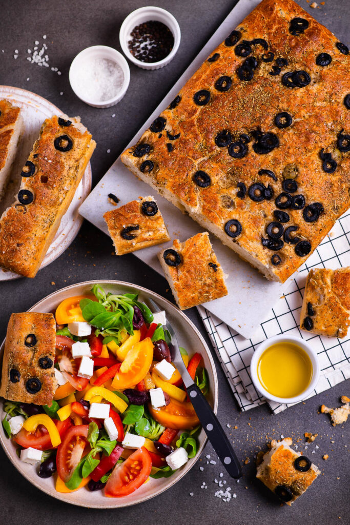Focaccia to kolejny po ciabatcie włoski rodzaj pieczywa. Tym razem mamy jednak do czynienia z wypiekiem, którego historia sięga starożytnych Greków! Co to jest focaccia? To płaski i mięsisty chleb w formie placka, który Grecy zjadali bez dodatków lub polewali oliwą, posypywali aromatycznymi ziołami i doprawiali wyrazistym w smaku czosnkiem.