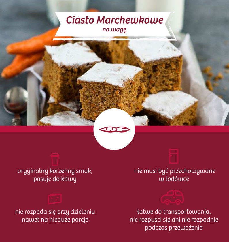 Wypieki muszą przetrwać podróż do pracy. Jeśli masz przed sobą godzinną wyprawę komunikacją miejską lub dojazd wymagający licznych przesiadek, lepiej wybierz ciasto bez masy, ozdób z kremu czy galaretki. W czasie podróży może zostać zniszczone lub uszkodzone w wyniku oddziaływania wysokiej temperatury. Wybierz raczej Ciasto MarchewkowePlacek z Porzeczkami, Ciasto Piaskowo-Cytrynowe lub Keks. Będziesz mieć gwarancję, że wypiek będzie wyglądał świeżo i ładnie, gdy dotrzesz na miejsce.