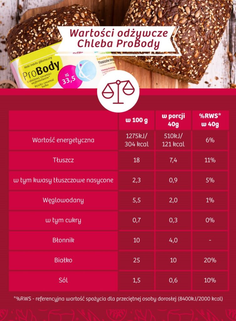 To także doskonały wybór dla tych, którzy mimo braku wskazań medycznych chcą stosować dietę z niskim IG. Spożywanie posiłków o średnim i niskim indeksie glikemicznym jest jednym z najzdrowszych sposobów żywienia. Racjonalna dieta powinna obfitować w produkty zbożowe, zwłaszcza pełnoziarniste, dlatego też zamiast usuwać pieczywo z codziennego menu, warto sięgnąć po taką alternatywę jak ProBody.