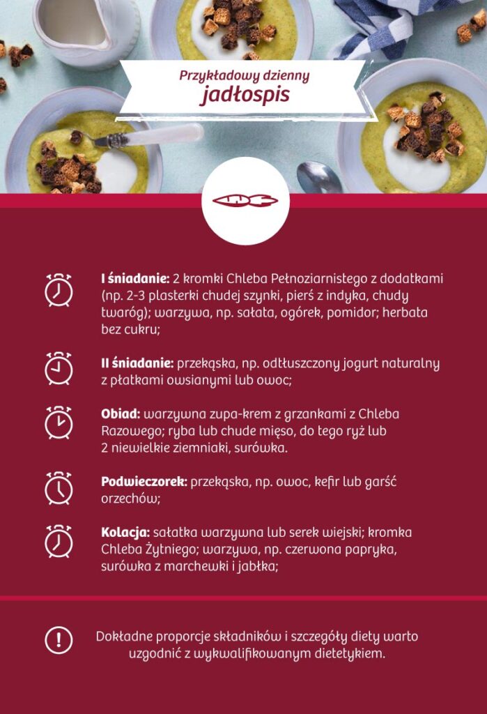 Proporcje składników, jak i szczegóły diety cukrzycowej zawsze należy skonsultować z wykwalifikowanym dietetykiem klinicznym.