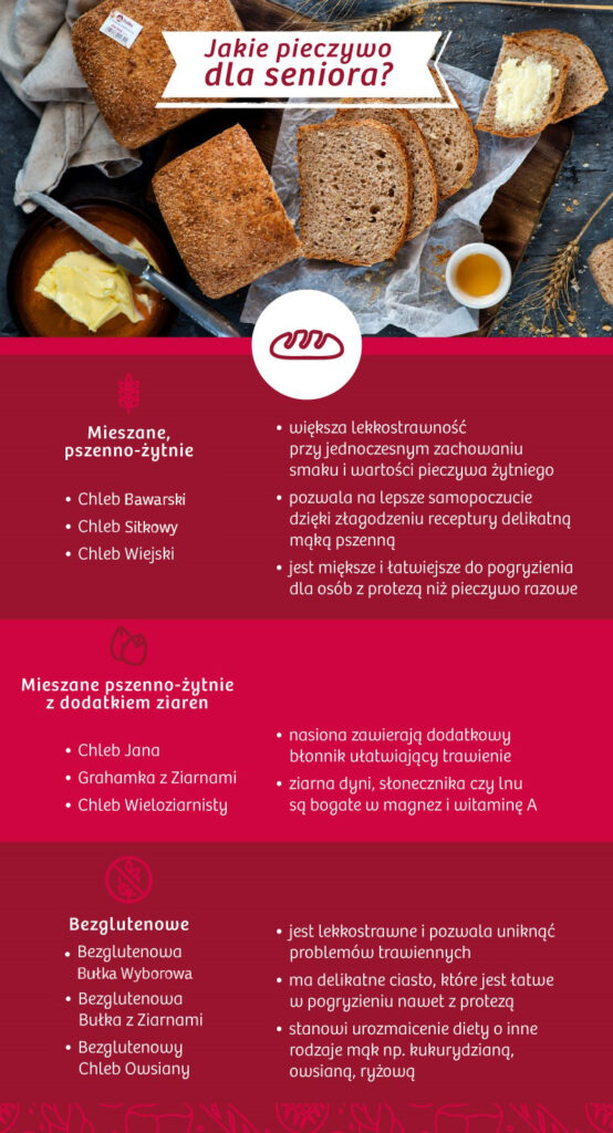 Seniorzy często skarżą się na kłopoty trawienne związane z nadkwasotą. W takim przypadku zaleca się pieczywo jaśniejsze. Jest ono znaczenie delikatniejsze dla przewodu pokarmowego.