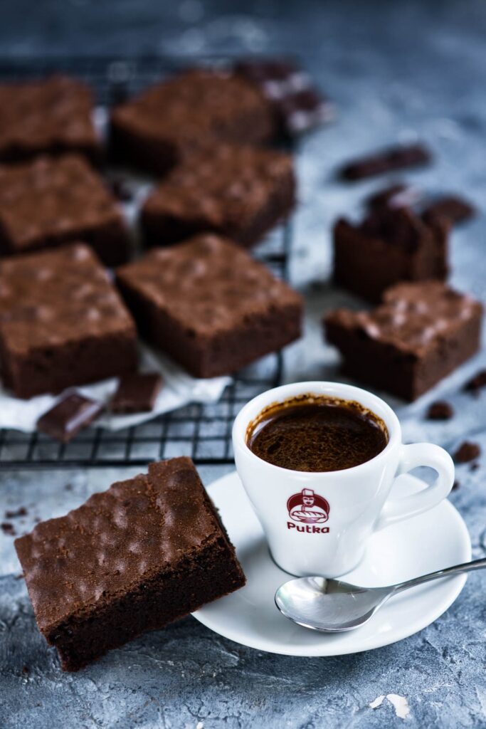 W Piekarni Cukierni Putka pieczemy amerykański deser w dwóch wersjach. Znajdziesz u nas klasyczne Brownie i Bezgluenowego Brownie. Oba desery są perfekcyjnie nasycone najlepszą gorzką czekoladą, idealnie miękkie i sprężyste. Doskonale smakują na ciepło i na zimno, w zestawie z waniliowymi lodami lub mocną kawą. Nic również nie stoi na przeszkodzie, by oblać je dodatkową porcją gorącej czekolady, sosu truskawkowego lub wiśniowego.