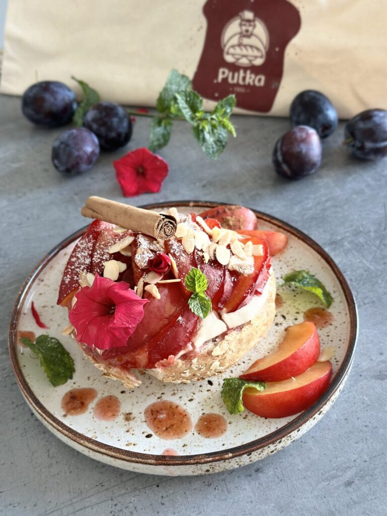 Bułka beta a’la drożdżówka z twarożkiem i śliwkami