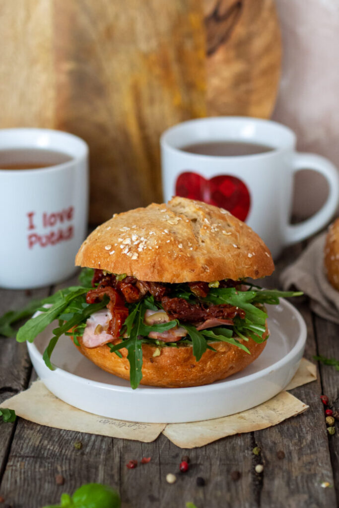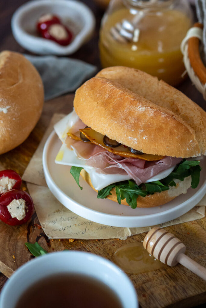 To połączenie zaskakuje dwukrotnie – drugi raz podczas degustacji! Sekretem tej kanapki jest dobra bułka, która utrzyma dużą ilość składników i nie popęka, jeśli zechcesz ją podgrzać.