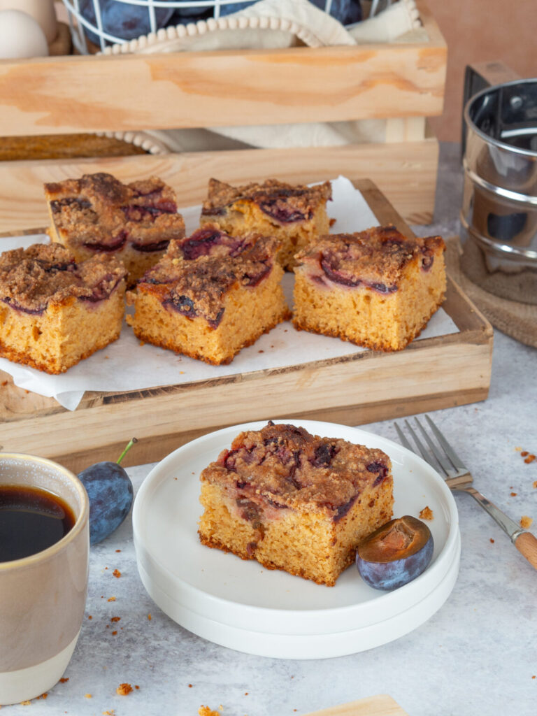 Ciasto Graham ze Śliwkami – mąkę pszenną w tym wypieku zastąpiliśmy mąką graham, która posiada więcej błonnika, składników mineralnych i witamin. Dzięki temu ciasto ma niższy indeks glikemiczny, a to dobra wiadomość dla smakoszy z zaburzeniami gospodarki glukozowo-insulinowej. W cieście nie brakuje także innych dodatków o dużej zawartości błonnika pokarmowego, takich jak: zarodki pszenne, otręby pszenne czy babka jajowata. No i jeszcze śliwki! To niezwykle niskokaloryczne owoce, w 100 gramach mają jedynie 49 kcal. Dodatkowo zawierają całą gamę prozdrowotnych substancji, które korzystnie wpływają na nasz organizm m.in. błonnik pokarmowy, który jak wiadomo jest dobrodziejstwem dla układu pokarmowego.