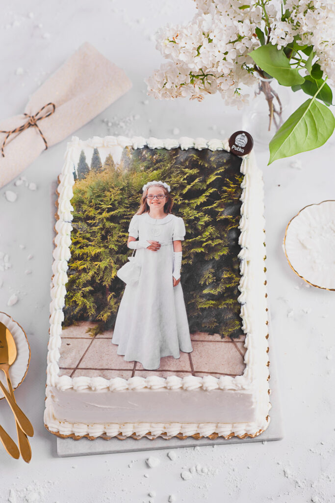 Żeby tort komunijny był tortem komunijnym Twojego dziecka wystarczy go spersonalizować. U nas to naprawdę łatwe!