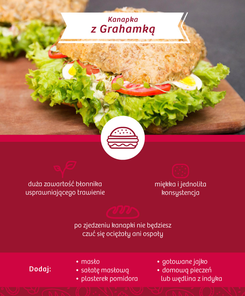 Grahamki długo zachowują świeżość i mniej się kruszą od kajzerek, co jest szczególnie ważne, gdy kanapki muszą przeleżeć cały dzień w torbie lub plecaku.