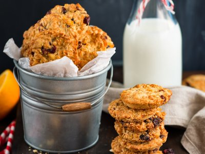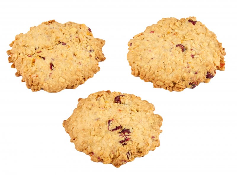 Ciasteczka z dużą ilością płatków owsianych, żurawiny i skórki pomarańczowej.