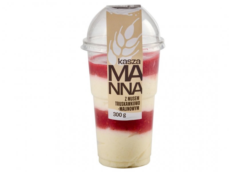 Delikatna kasza manna na mleku z orzeźwiającym musem truskwkowo-malinowym.