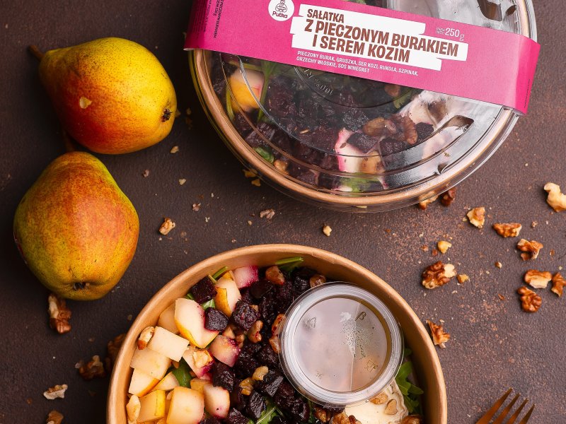Babeczka z kruchego ciasta kakaowego, wypełniona kremem budyniowo-czekoladowym. Skałdniki: mąka PSZENNA, cukier, margaryna, czekolada 8% (cukier, miazga kakaowa, masło kakaowe), woda, JAJA, kakao (4%), skrobia modyfikowana, MLEKO, MLEKO w proszku, ORZECHY LASKOWE, emulgator: lecytyny ze słonecznika, substancja zagęszczająca: alginian sodu, cukier wanilinowy, proszek do pieczenia.