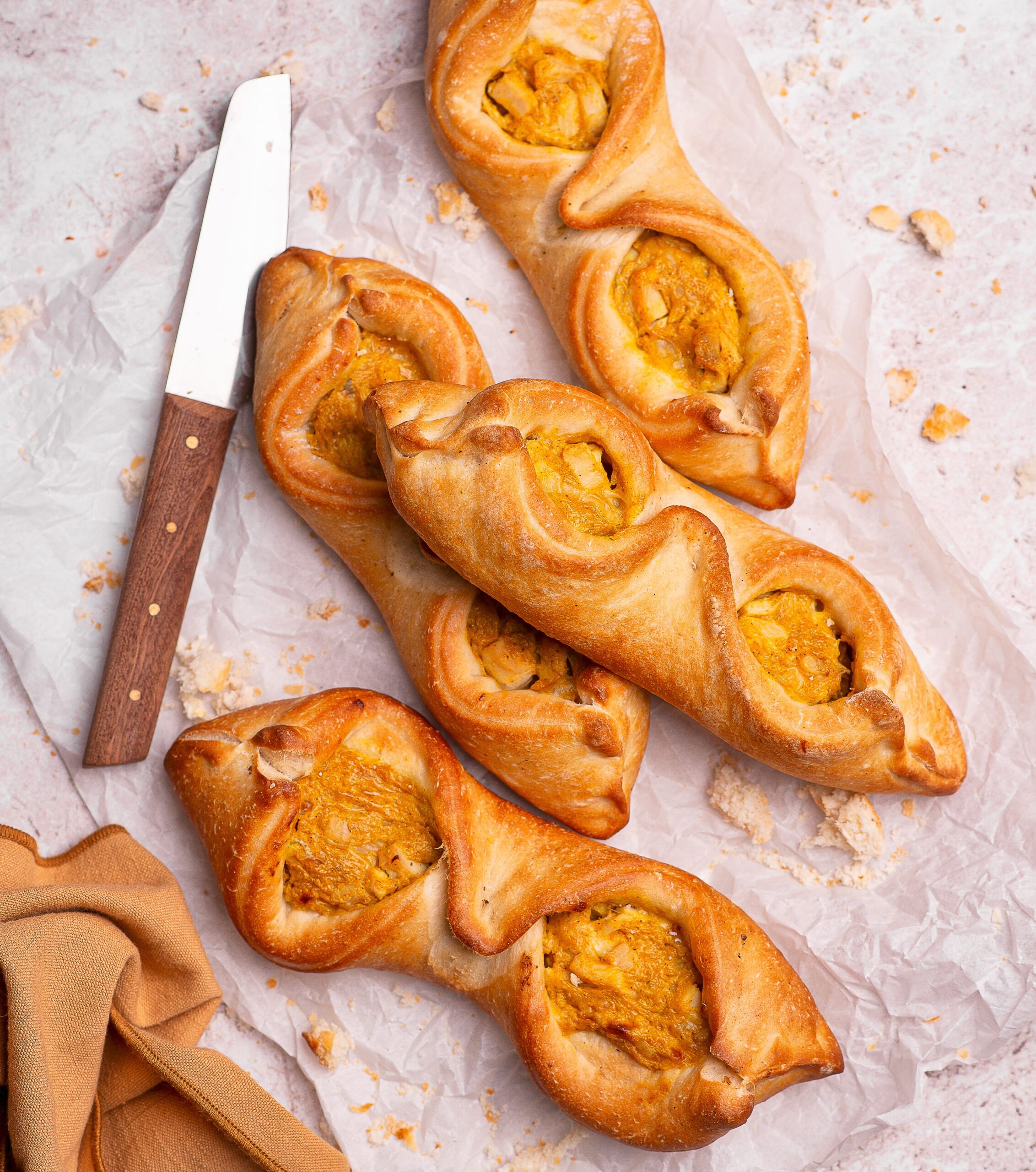 Babeczka z kruchego ciasta kakaowego, wypełniona kremem budyniowo-czekoladowym. Skałdniki: mąka PSZENNA, cukier, margaryna, czekolada 8% (cukier, miazga kakaowa, masło kakaowe), woda, JAJA, kakao (4%), skrobia modyfikowana, MLEKO, MLEKO w proszku, ORZECHY LASKOWE, emulgator: lecytyny ze słonecznika, substancja zagęszczająca: alginian sodu, cukier wanilinowy, proszek do pieczenia.