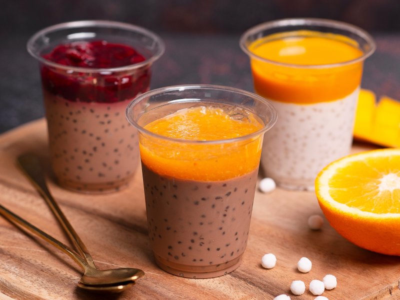 Masz ochotę na deser i szukasz alternatywny dla tradycyjnych słodkości? Jesteś w odpowiednim miejscu! Wybierz Panna Cottę z Musem Truskawkowo-Malinowym lub Panna Cottę z Musem Mango. Osobom, które unikają w diecie nabiału proponujemy desery przygotowane na bazie mleka kokosowego: Deser Czekoladowy z Tapioką i Wiśniami, Deser Czekoladowy z Tapioką, Pomarańczą z Chili lub Deser z Tapioką i Musem Mango.